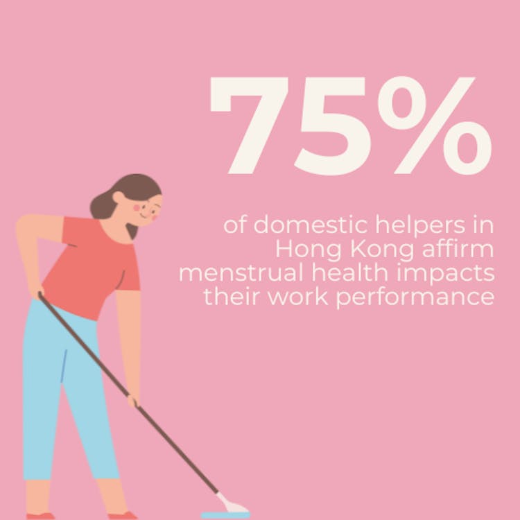 Despite these challenges, 79% of domestic helpers do not communicate their menstrual pain to their employers, and 80% of employers do not reduce work tasks during menstruation.